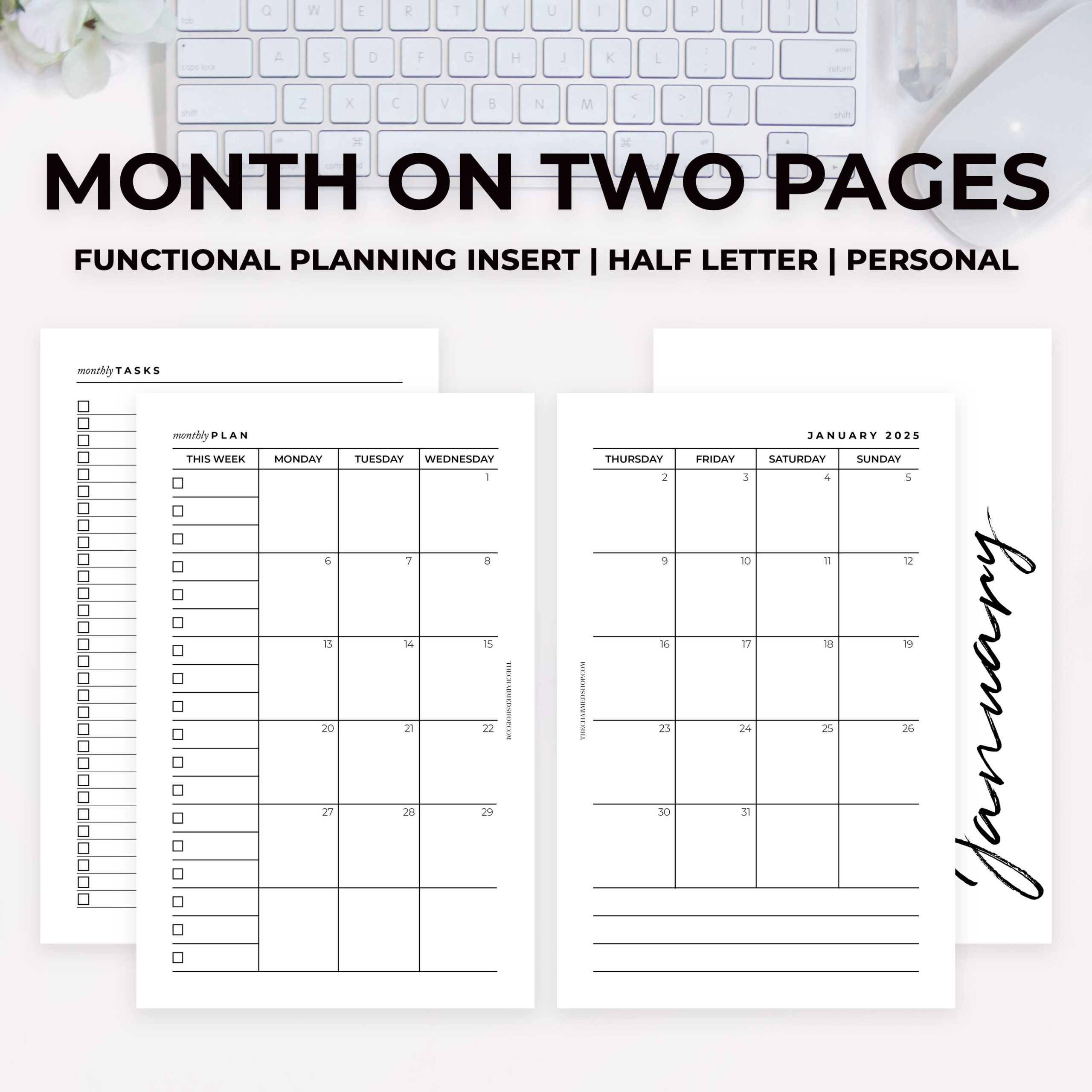 2025 Month On Two Pages Calendar Printable PDF The Charmed Shop