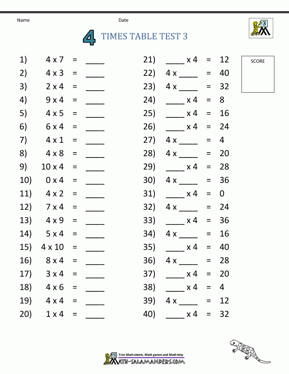 Times Tables For Kids 4 Times Table Sheets
