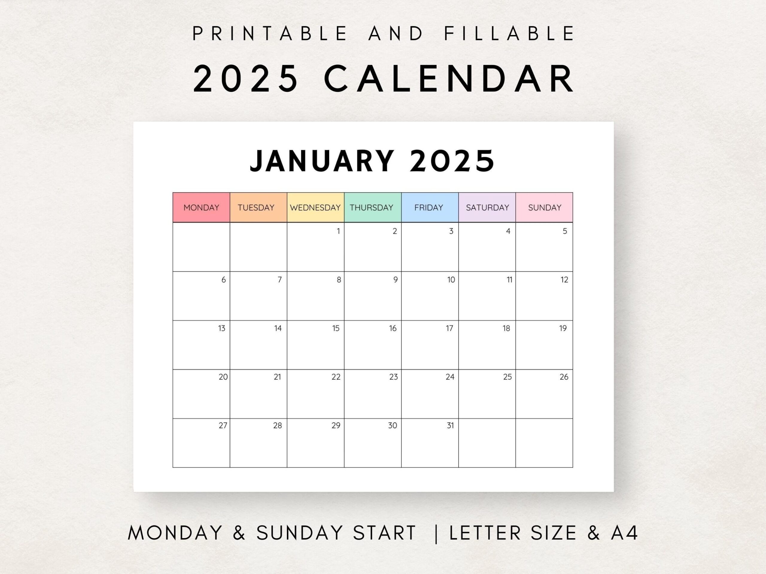With our Calendar Monthly 2025 Printable, you can easily see an entire month at a glance. This makes it easy to plan ahead and stay organized. You can customize the calendar to suit your needs, whether you prefer a Sunday or Monday start or need extra space for notes.