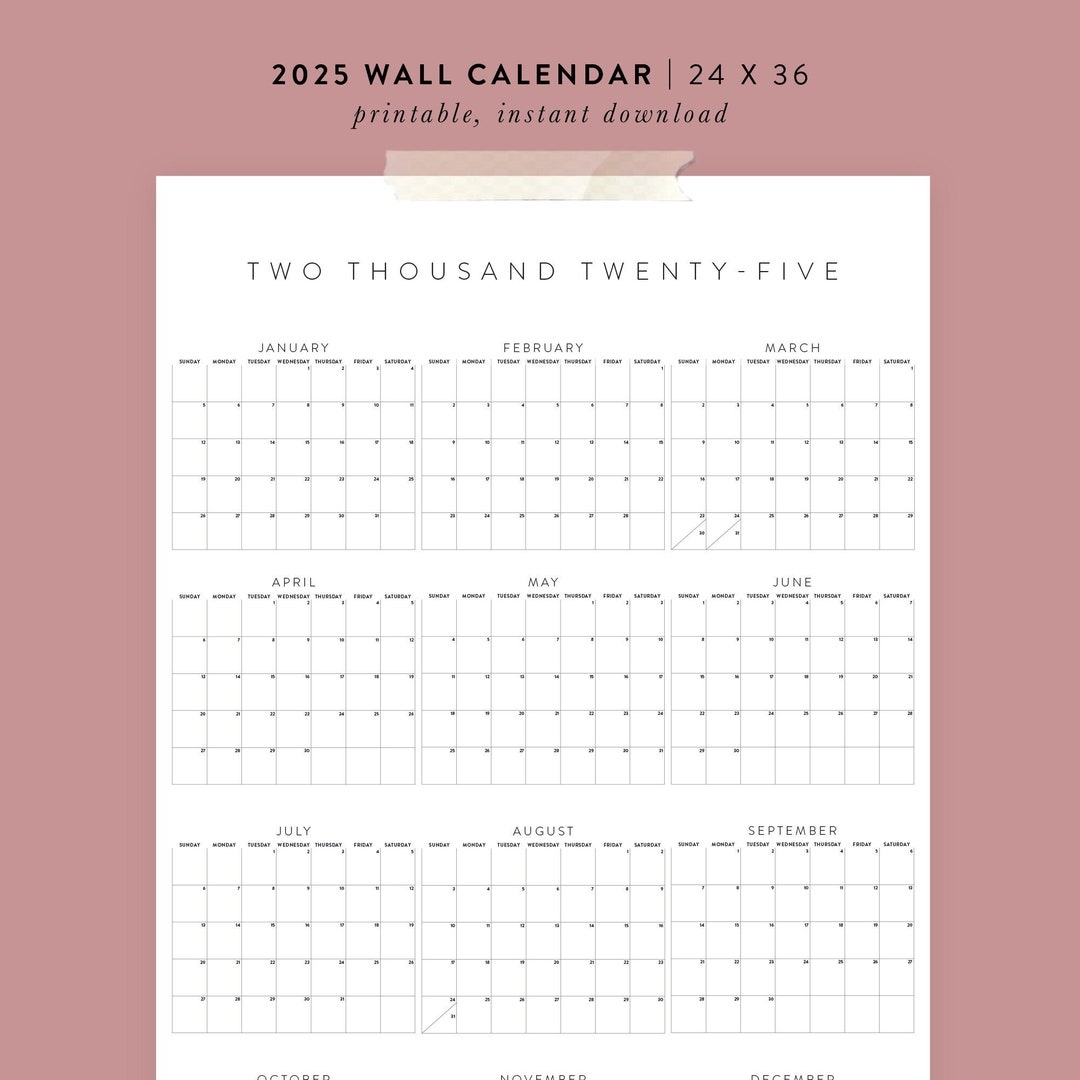 Printable 2025 Wall Calendar 24×36 Poster 01 Etsy