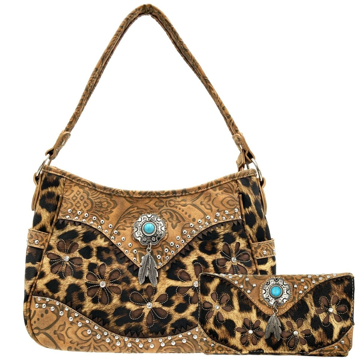 Zelris Leopard Western Turquoise Feather Concealed Carry Hobo Purse Wallet Set EBay