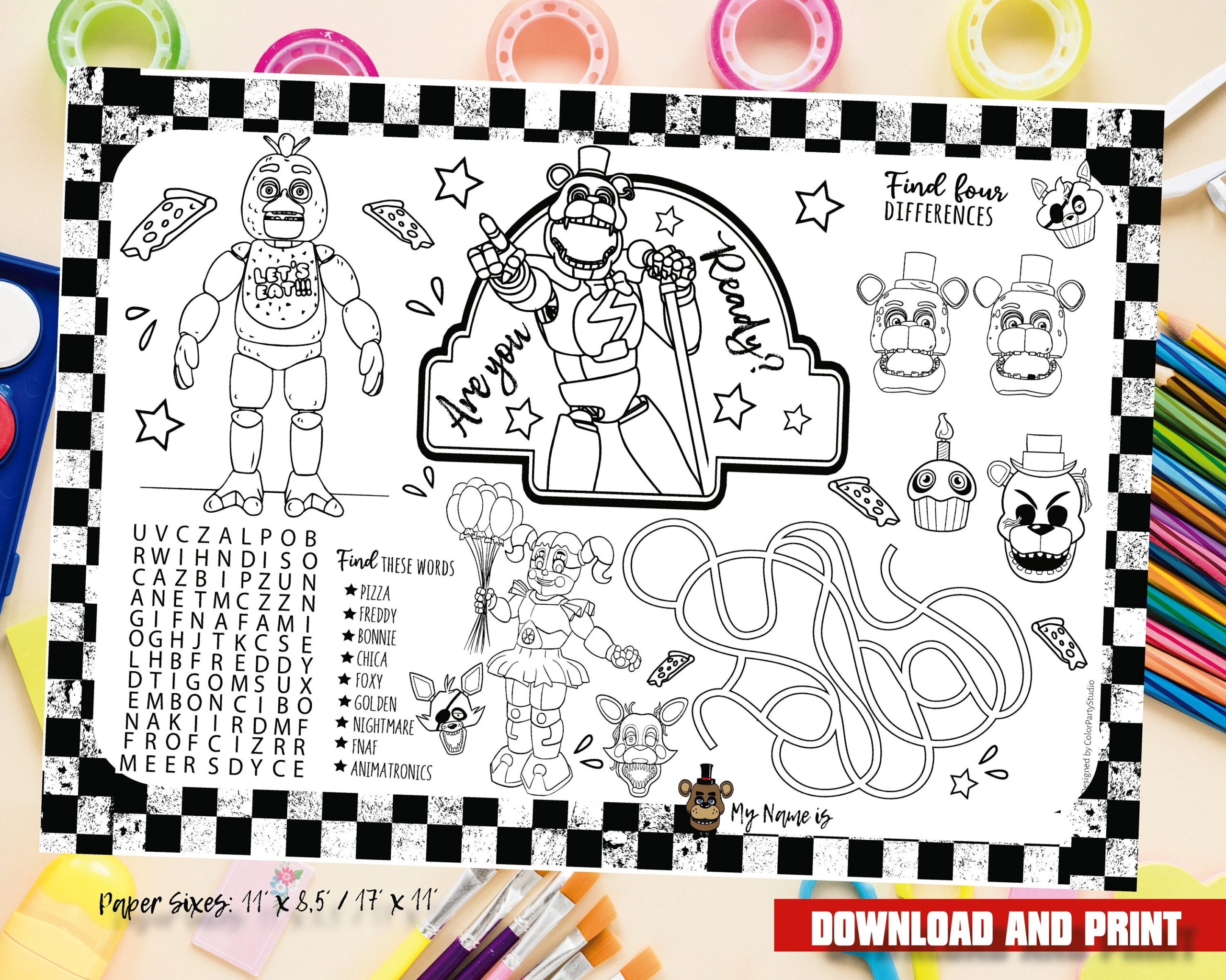 Five Nights At Freddy s Coloring Placemat Digital Instant Download Table Activity Kids Coloring Page Printable File Etsy