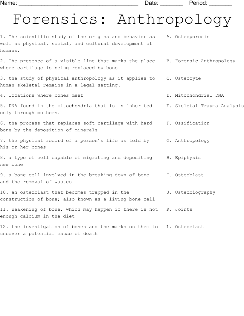 Forensics Anthropology Worksheet WordMint