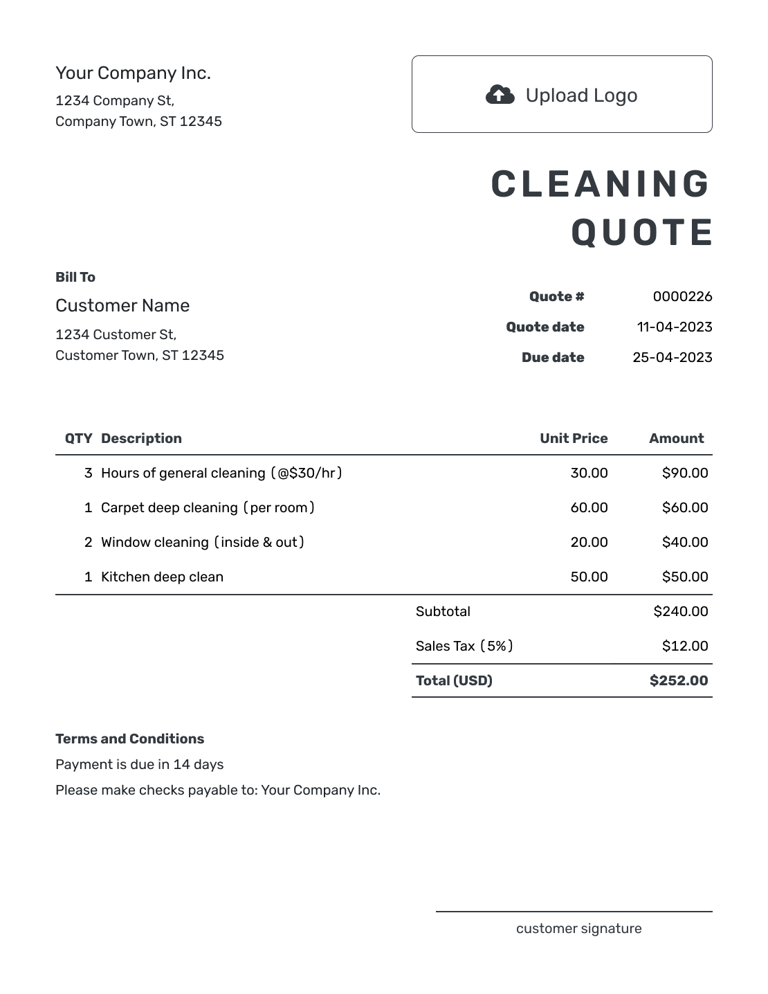 Free Cleaning Quote Template Docelf