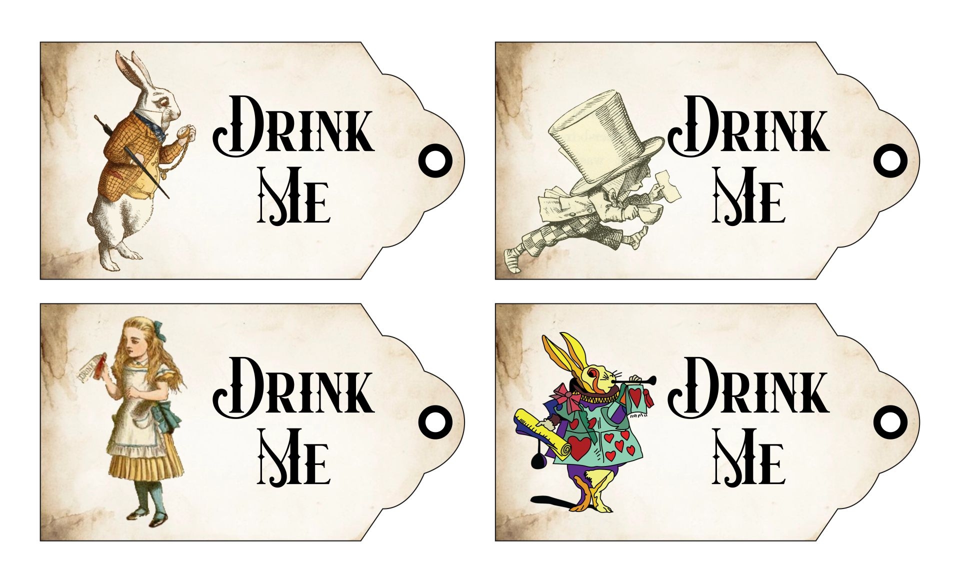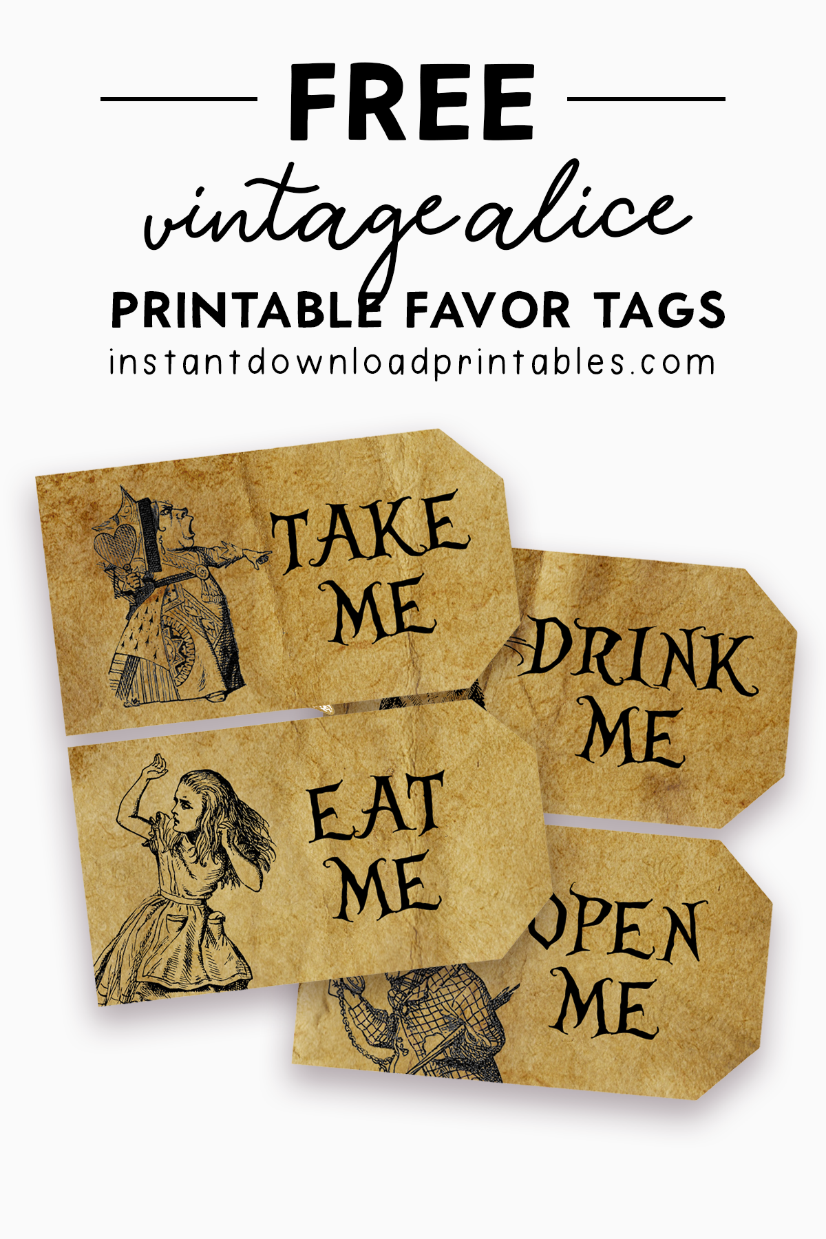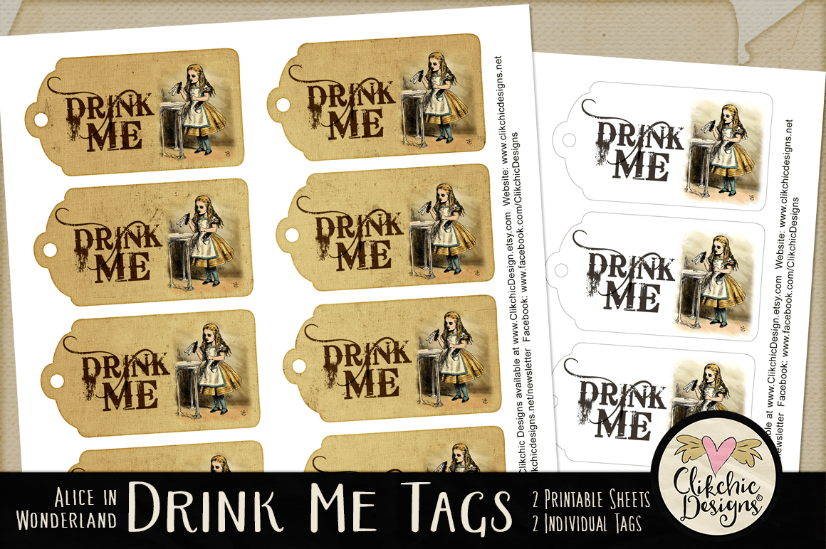 Free Alice In Wonderland Vintage Tags Eat Me Drink Me Instant Download Printables Instant Download Printables
