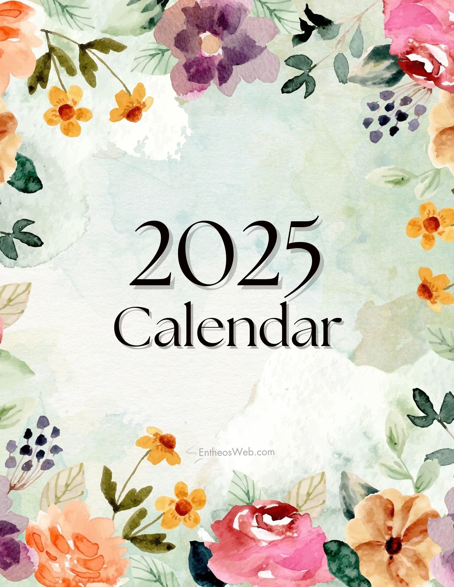2025 Floral Monthly Calendar Free PDF Printable EntheosWeb