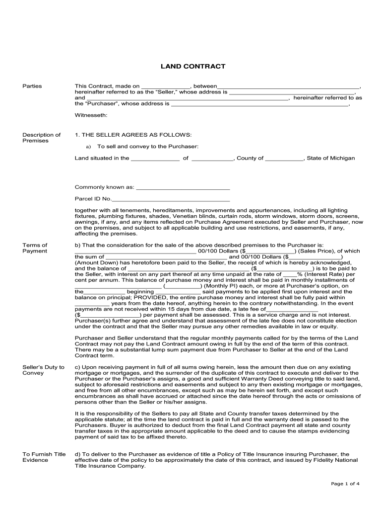 Land Purchase Agreement Land Contract Free PDF Form LawDistrict
