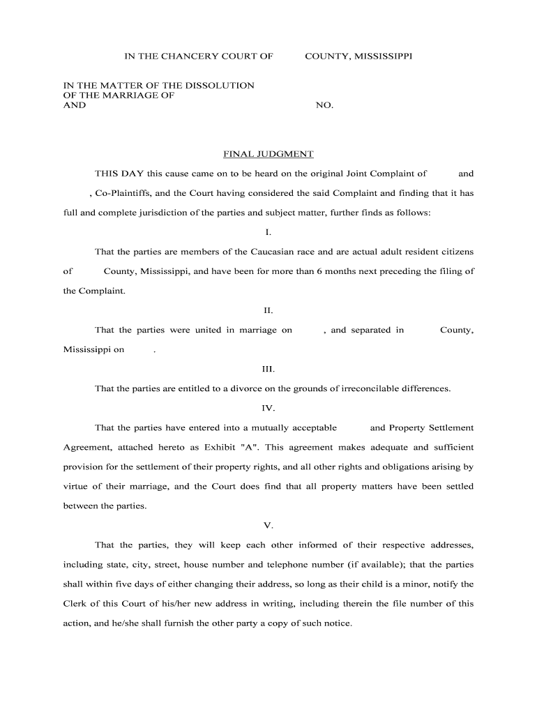 Mississippi Divorce Forms Pdf Fill Online Printable Fillable Blank PdfFiller