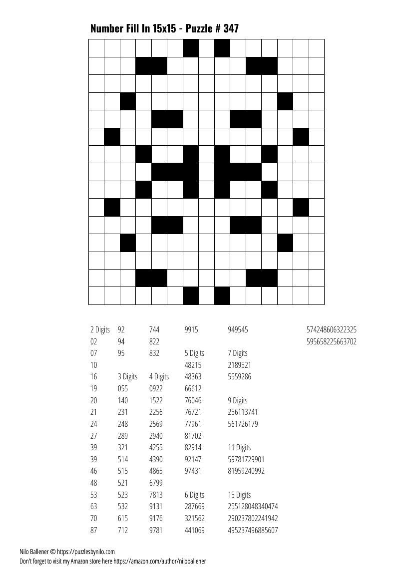 Free Downloadable Puzzle Number Fill In 15×15 346 Puzzles By Nilo