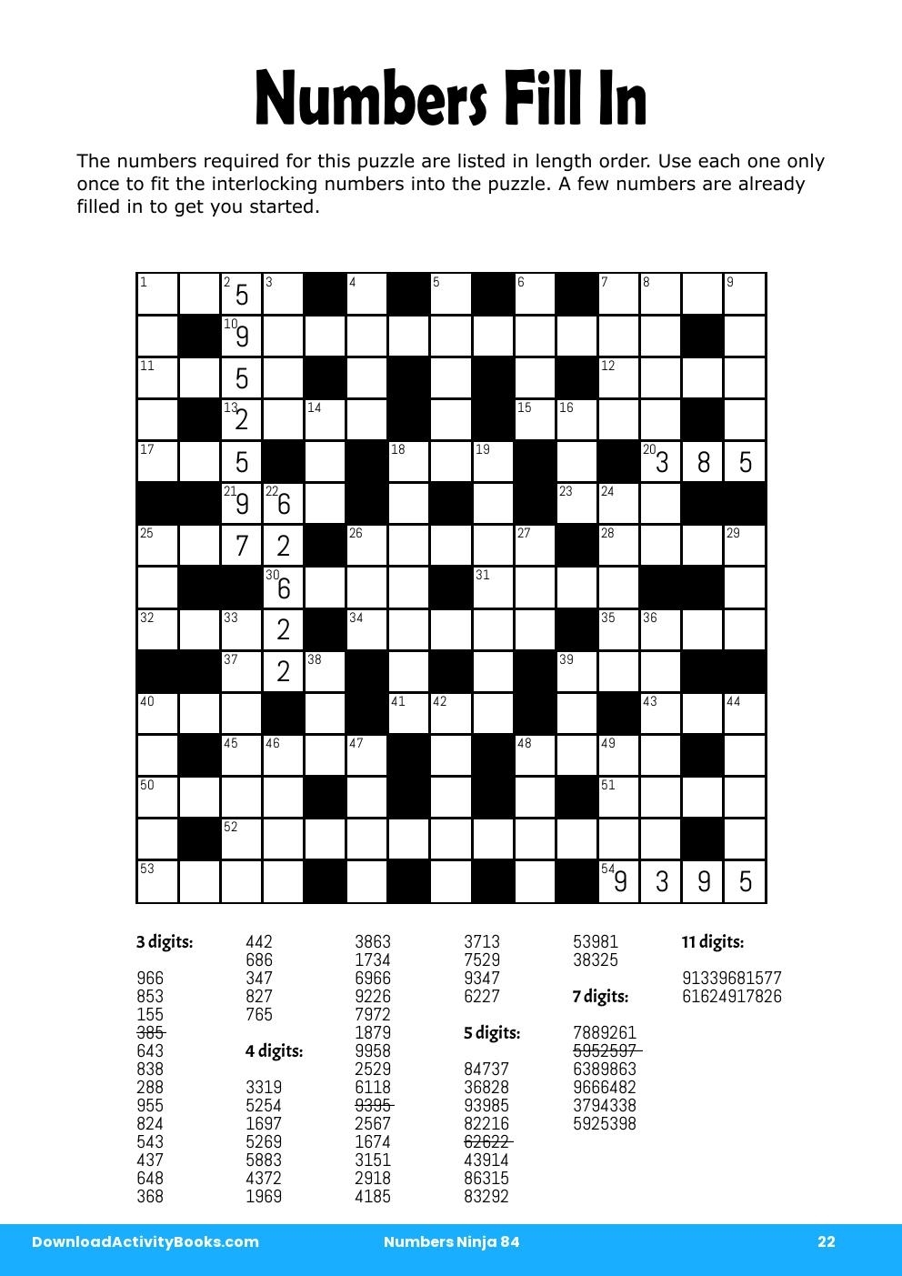 Numbers Fill In In Numbers Ninja 84