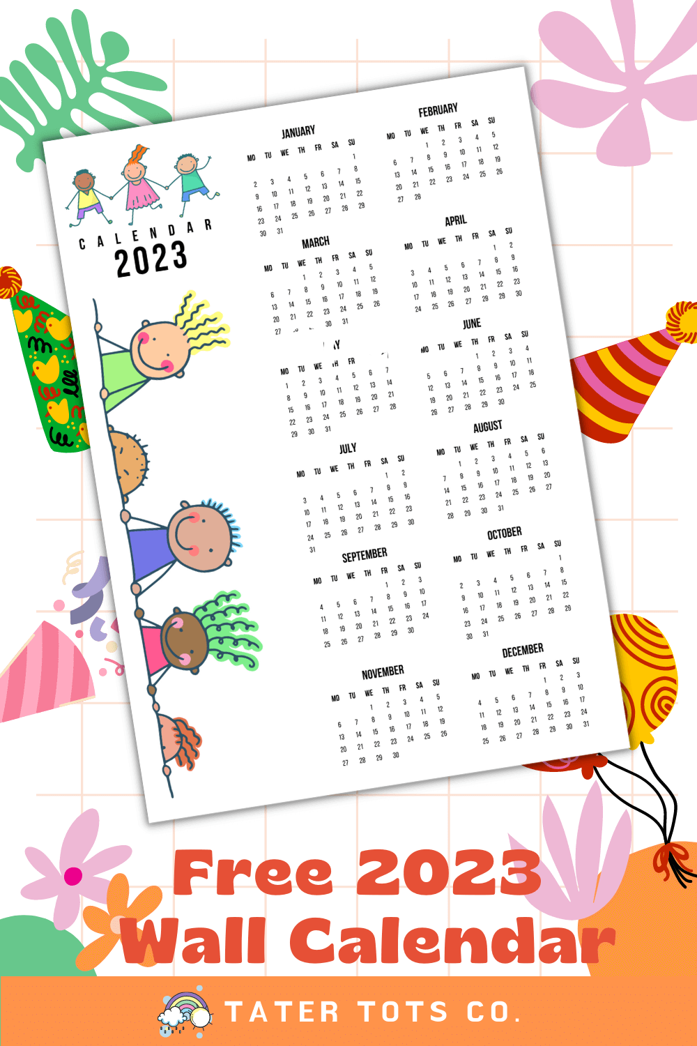 Free 2023 Calendar Printable Wall Poster Happy Childrens Day Tater Tots Co