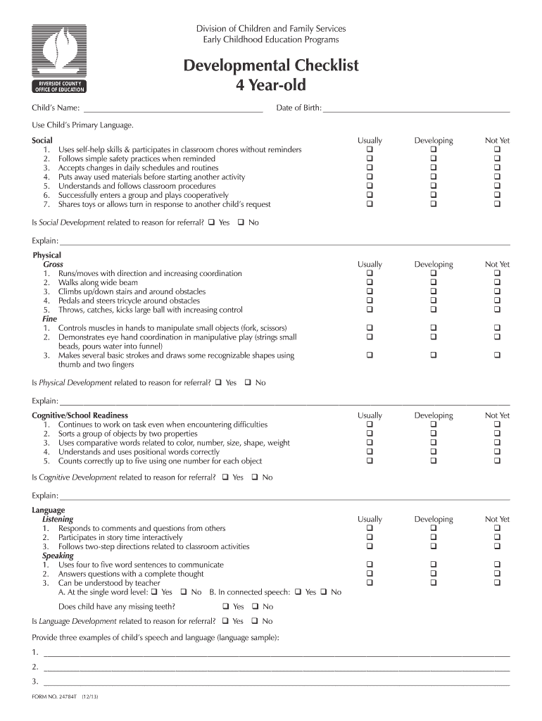 Developmental Milestones 4 Years Old Pdf Fill Online Printable Fillable Blank PdfFiller