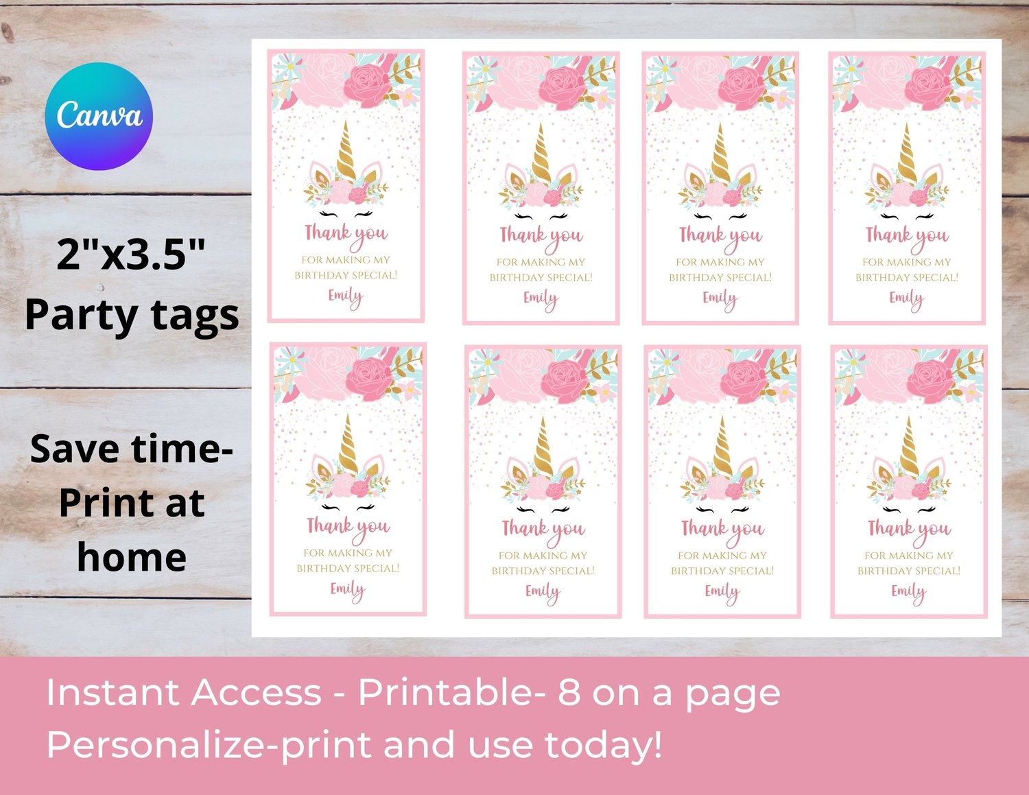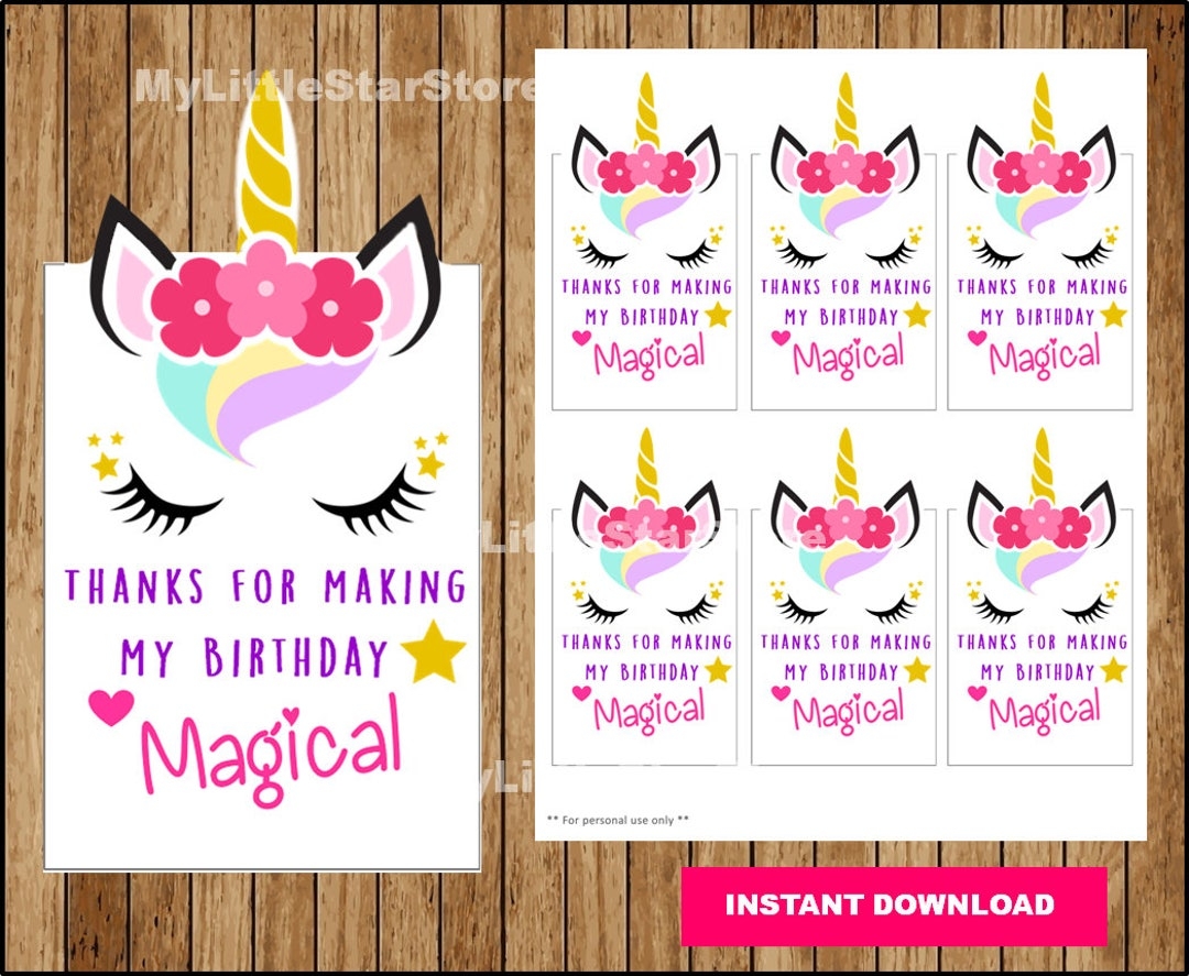 Unicorn Thank You Tags Printable Unicorn Tags Unicorn Party Tags Instant Download Etsy