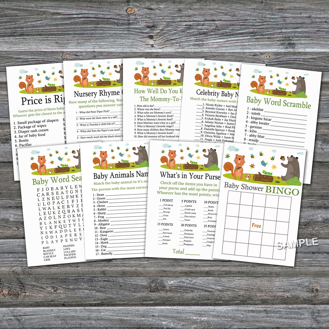 Woodland Baby Shower Games Set PRINTABLE Forest Animals Baby Shower Games Digital File Set Of 8 Animals Baby Shower Game Set BSU001 Etsy