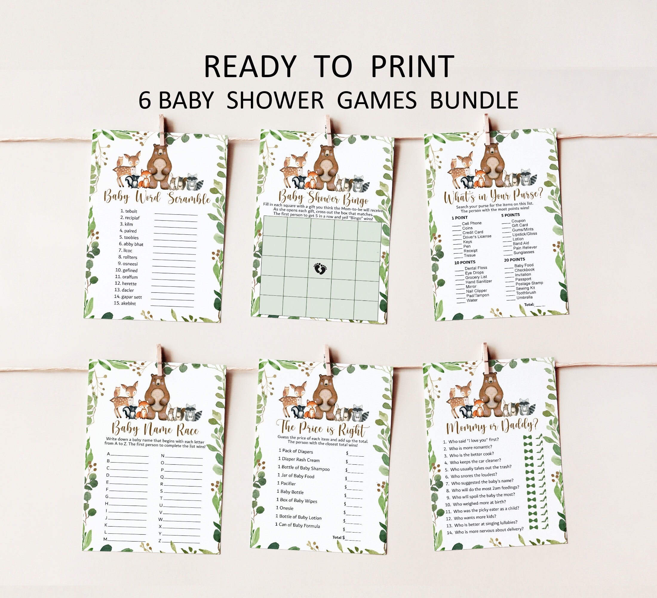 Woodland Baby Shower Games Bundle Greenery Woodland Animals Baby Shower Games Forest Baby Shower Game Printable NOT Editable 0120 Etsy
