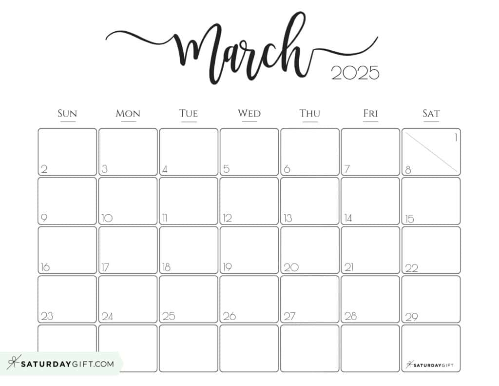 March 2025 Calendar 20 Cute FREE Printables SaturdayGift