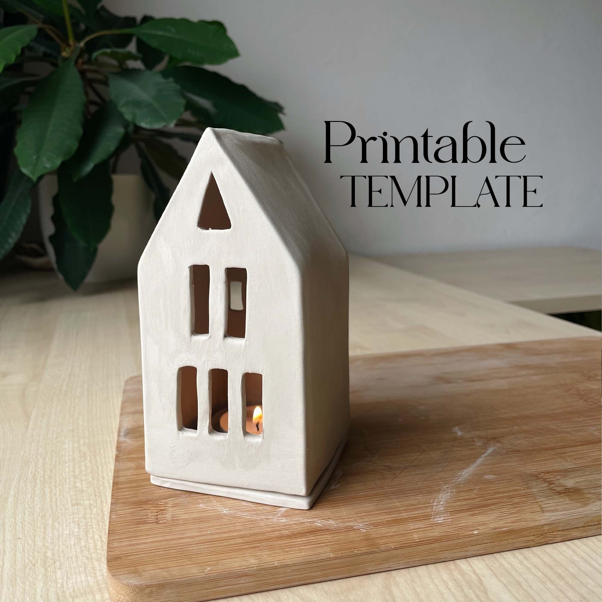 Modern Tealight House Template Ceramics Tools Slab Building Easy Clay DIY Pottery Templates For Slab Building Tutorial Etsy