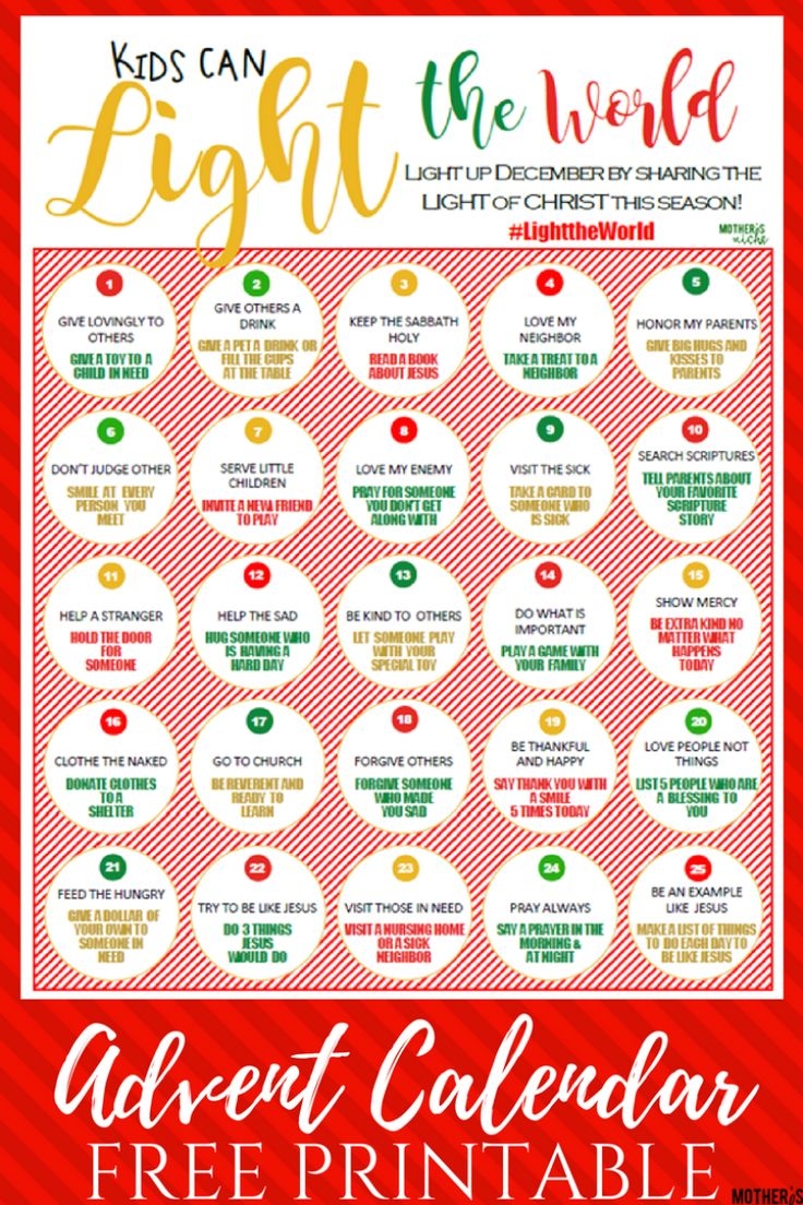 Kids Can LIGHT THE WORLD Advent Calendar Free Printable Advent Calendars For Kids Christmas Advent Calendar Printable Advent Calendar