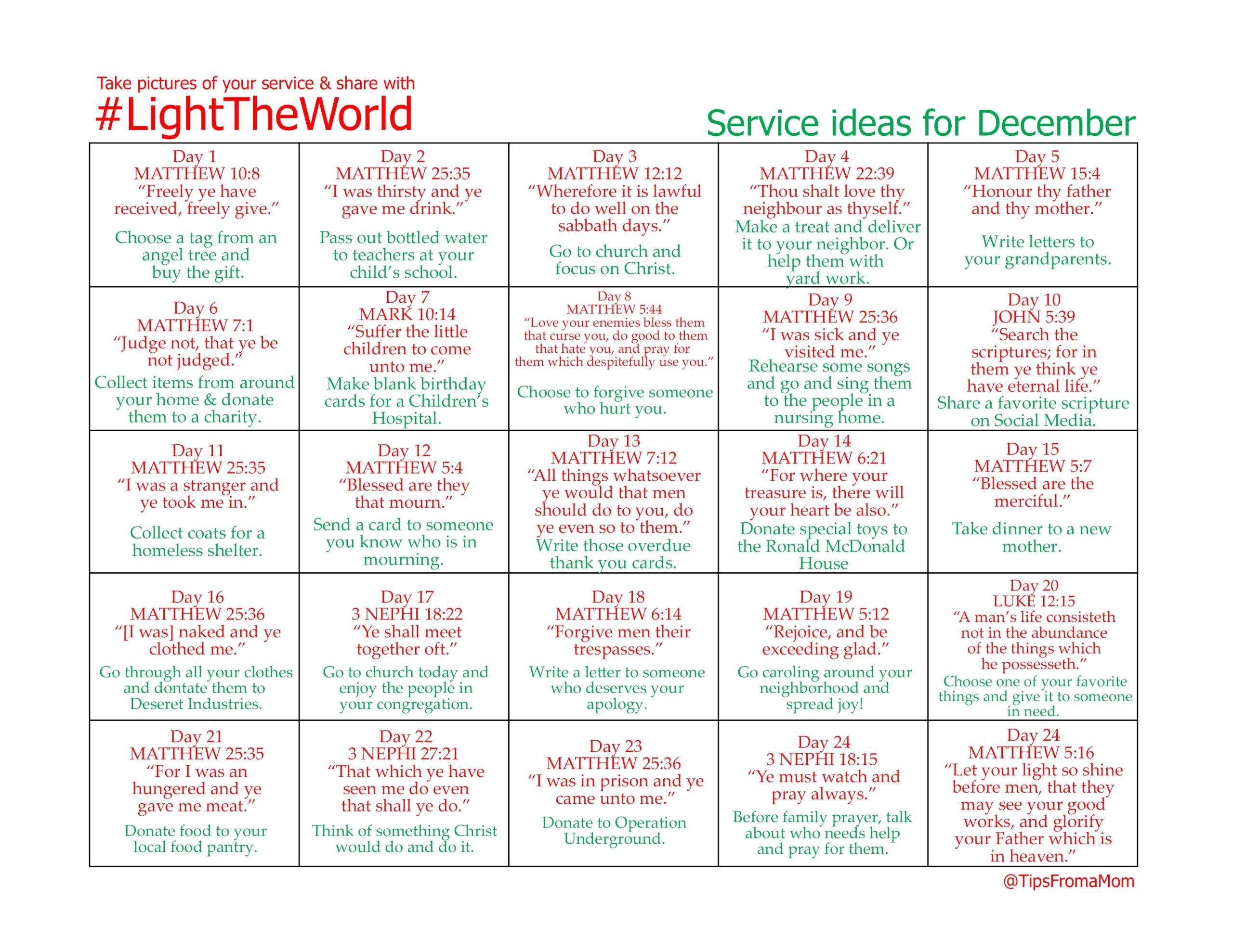 LightTheWorld Service Ideas Calendar Printable How To Keep Christ In Christmas