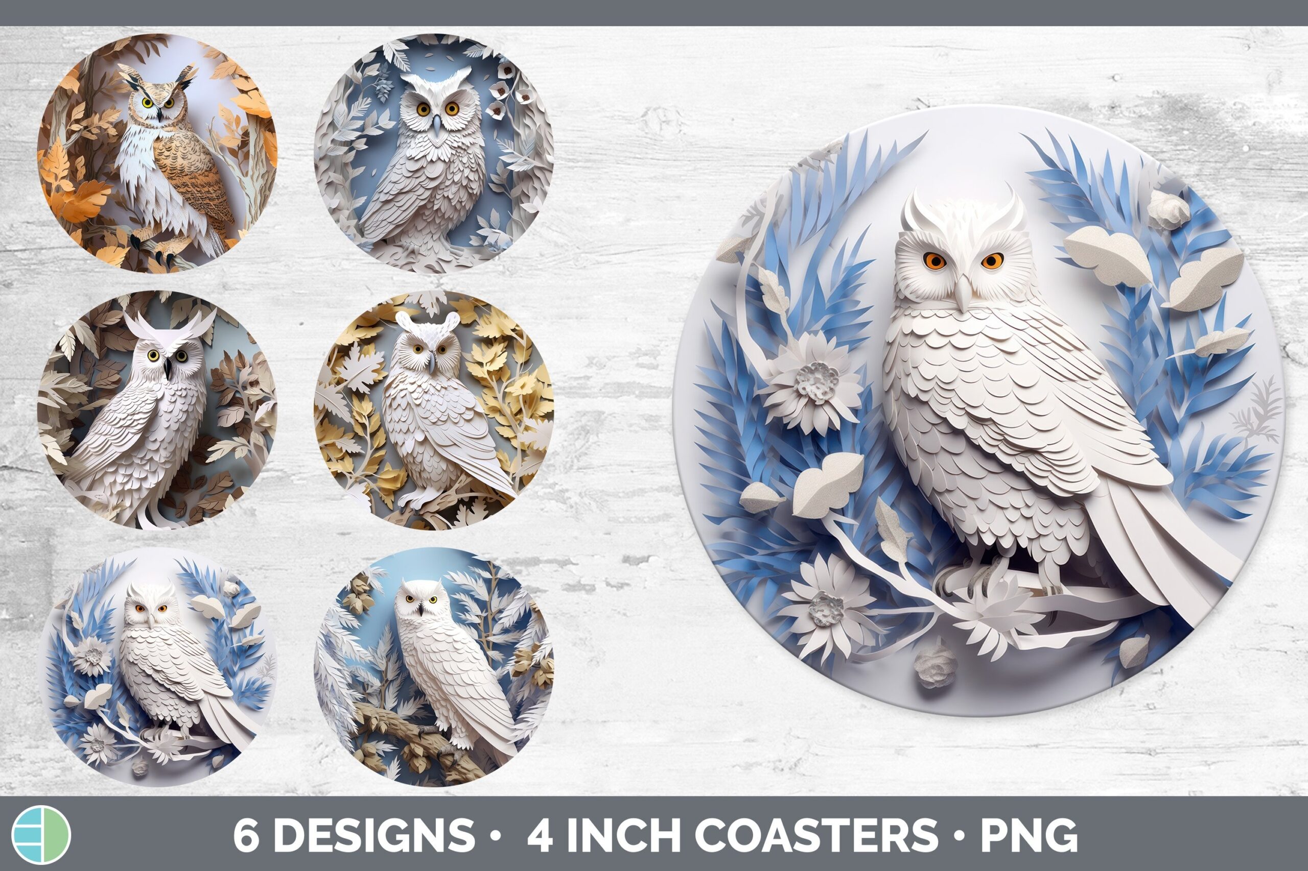 3D Paper Owl Bird Round Coaster Sublimation Coaster Design
