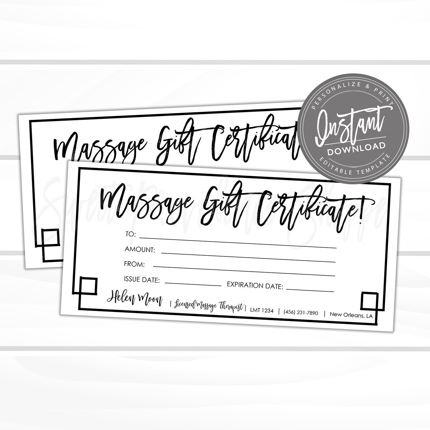 Massage Gift Certificate INSTANT DOWNLOAD EDITABLE Template For Christmas Voucher Voucher Printable Personalized Ticket Birthday Pass Etsy