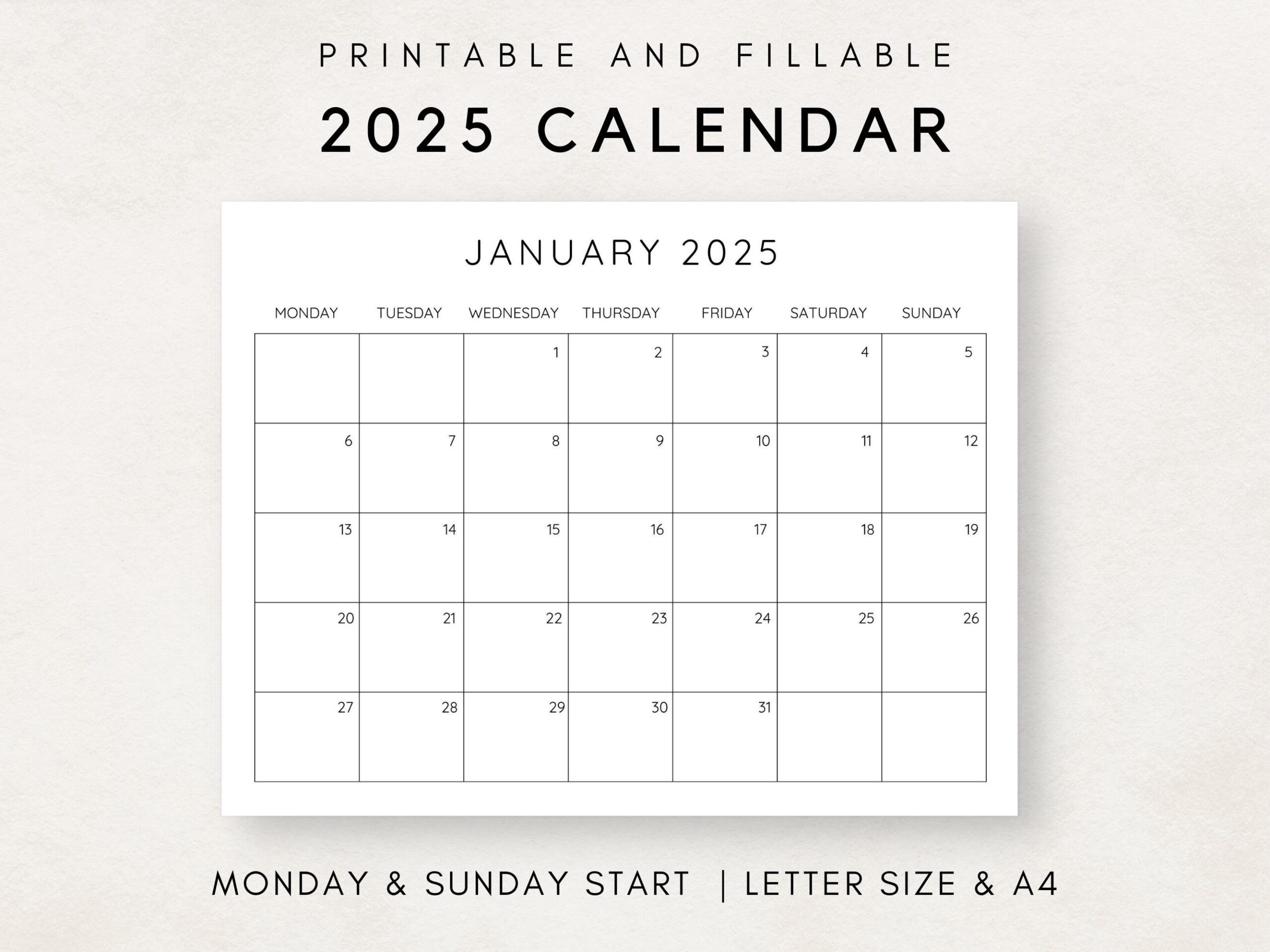 2025 Calendar Printable Monthly Calendar 2025 Fillable Calendar 2025 Planner Printable Minimalist Calendar Simple Clean Calendar Etsy