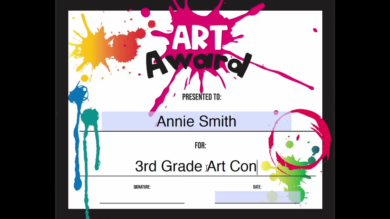 Art Award Certificate Printable Art Class Or Student Art Exhibit Editable PDF Digital Download Art Teacher Award Template Etsy