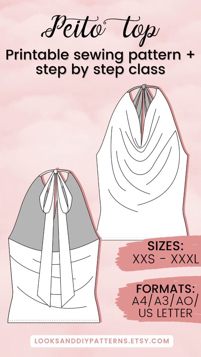Cowl Neck Halter Top Sewing Pattern PDF Backless V Neck Cami Crop Top Pattern Instant Download