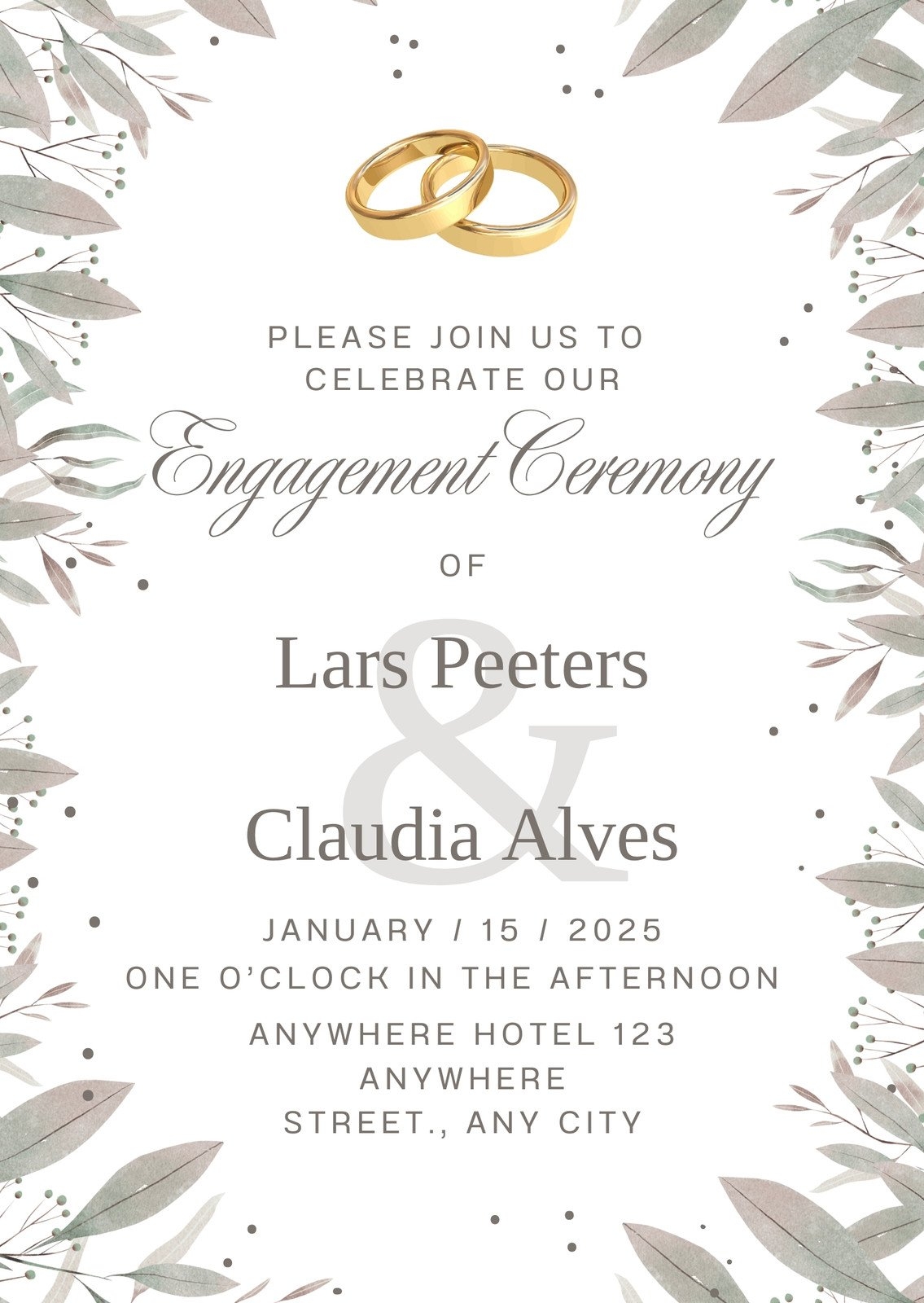 From floral designs to minimalist layouts, our collection of printable engagement invitation templates offers a variety of options to suit your style. You can easily add your names, date, time, and venue details to personalize the invitation to your liking.