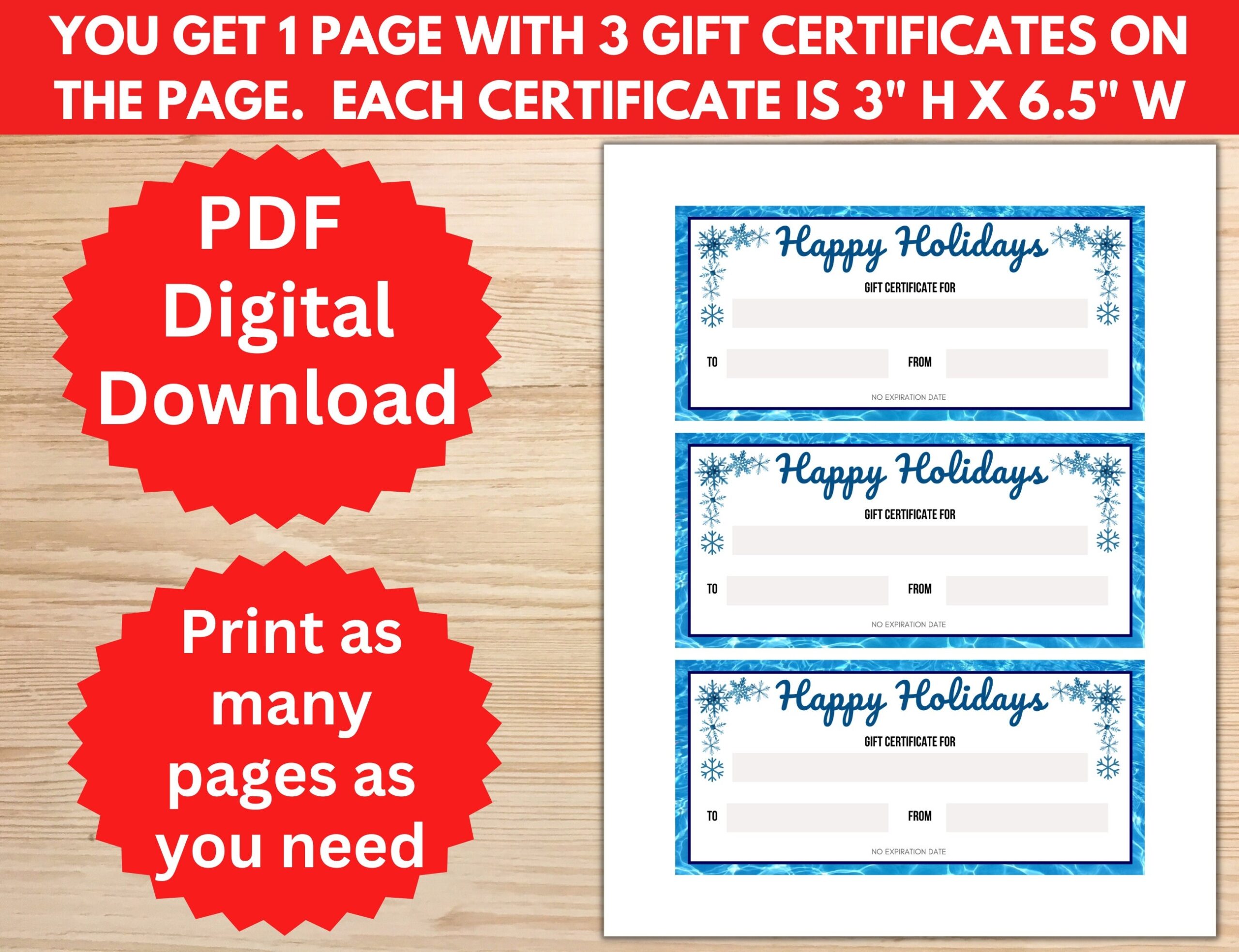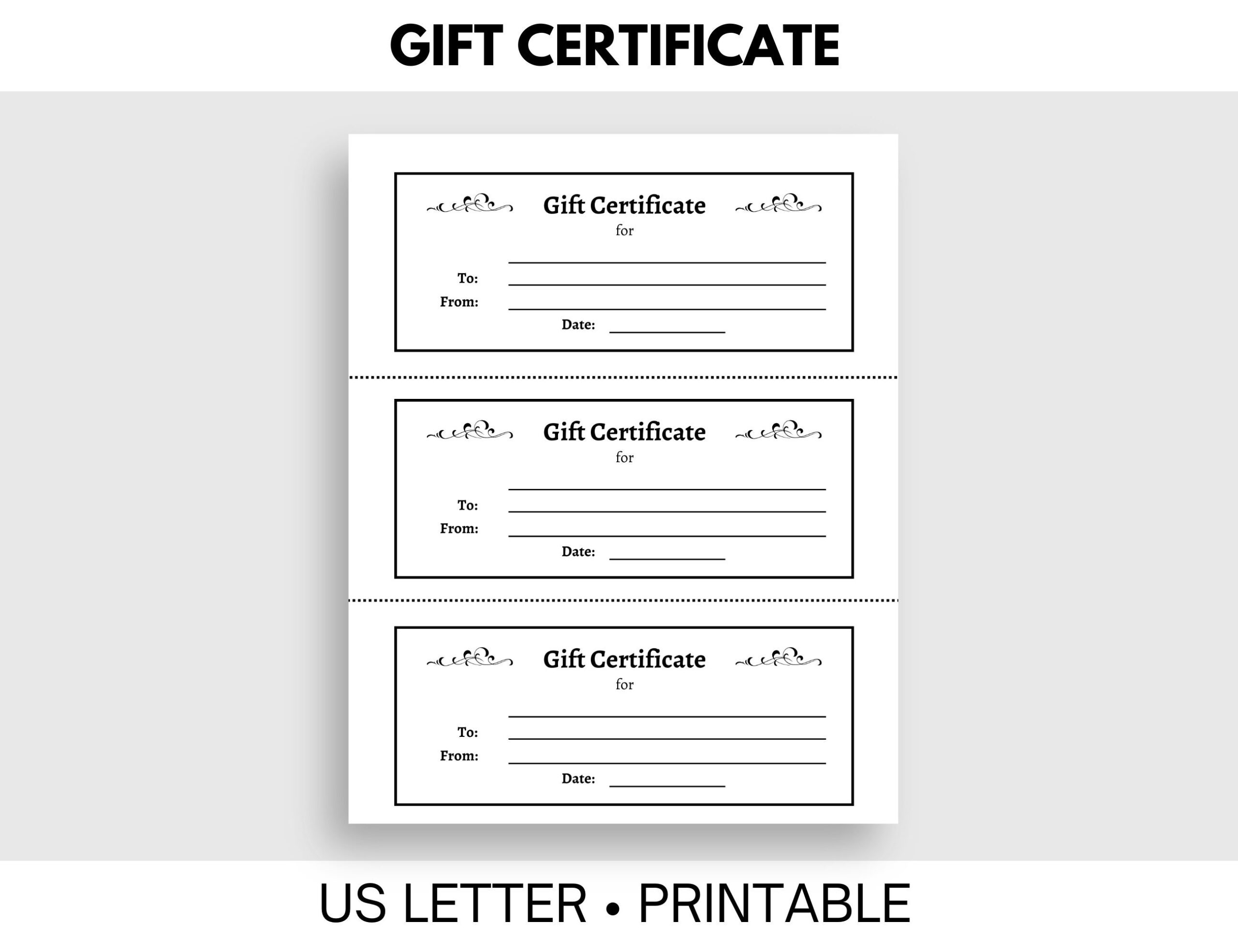 Printable Gift Certificate 3 Certificates Per Page US Letter Etsy