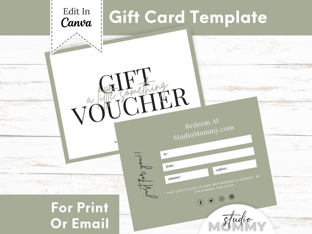 Green Gift Certificate Template Printable And Editable Gift For Women Gift Voucher Template Printable Gift Voucher Gift Card A14 Etsy
