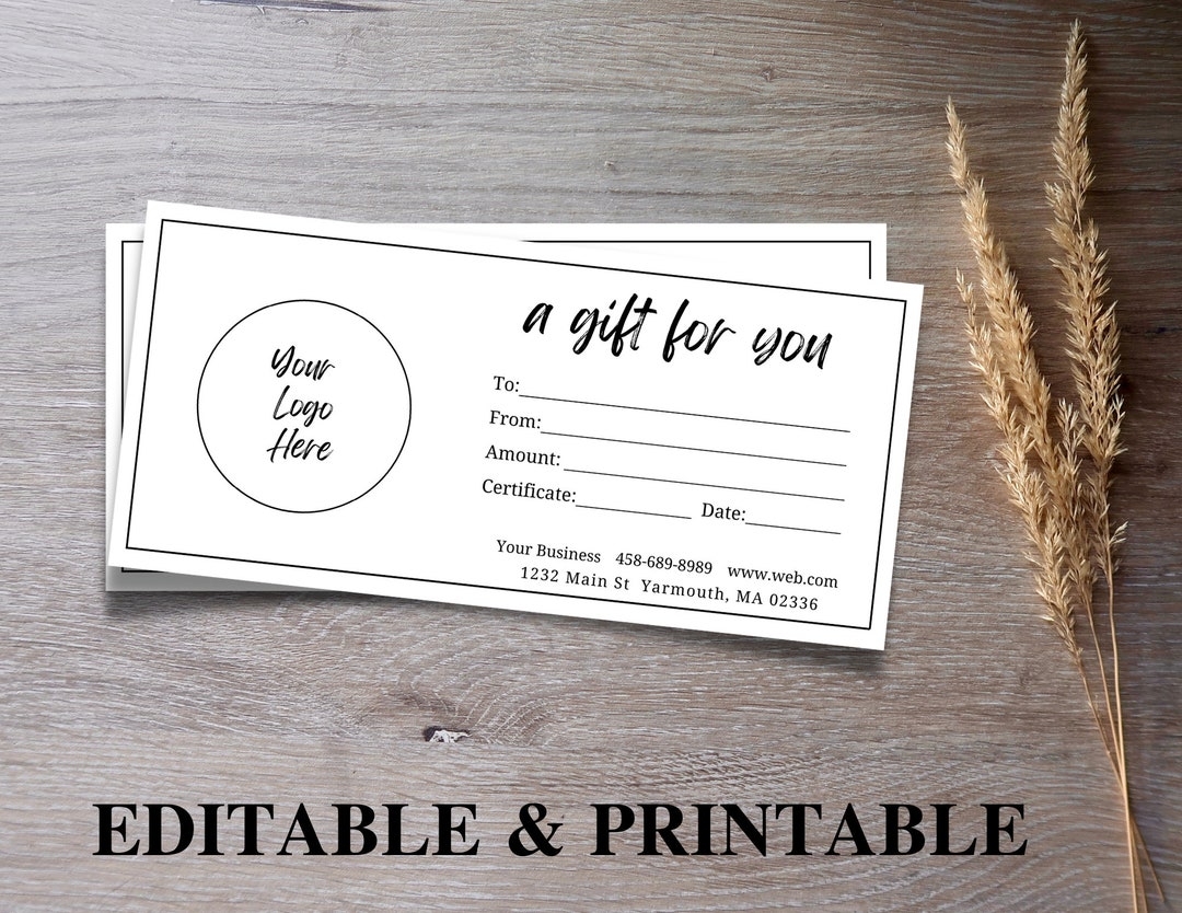 Modern Gift Certificate Template Printable Editable Gift Certificate Template With Logo Editable Gift Card Instant Download Gift Voucher Etsy