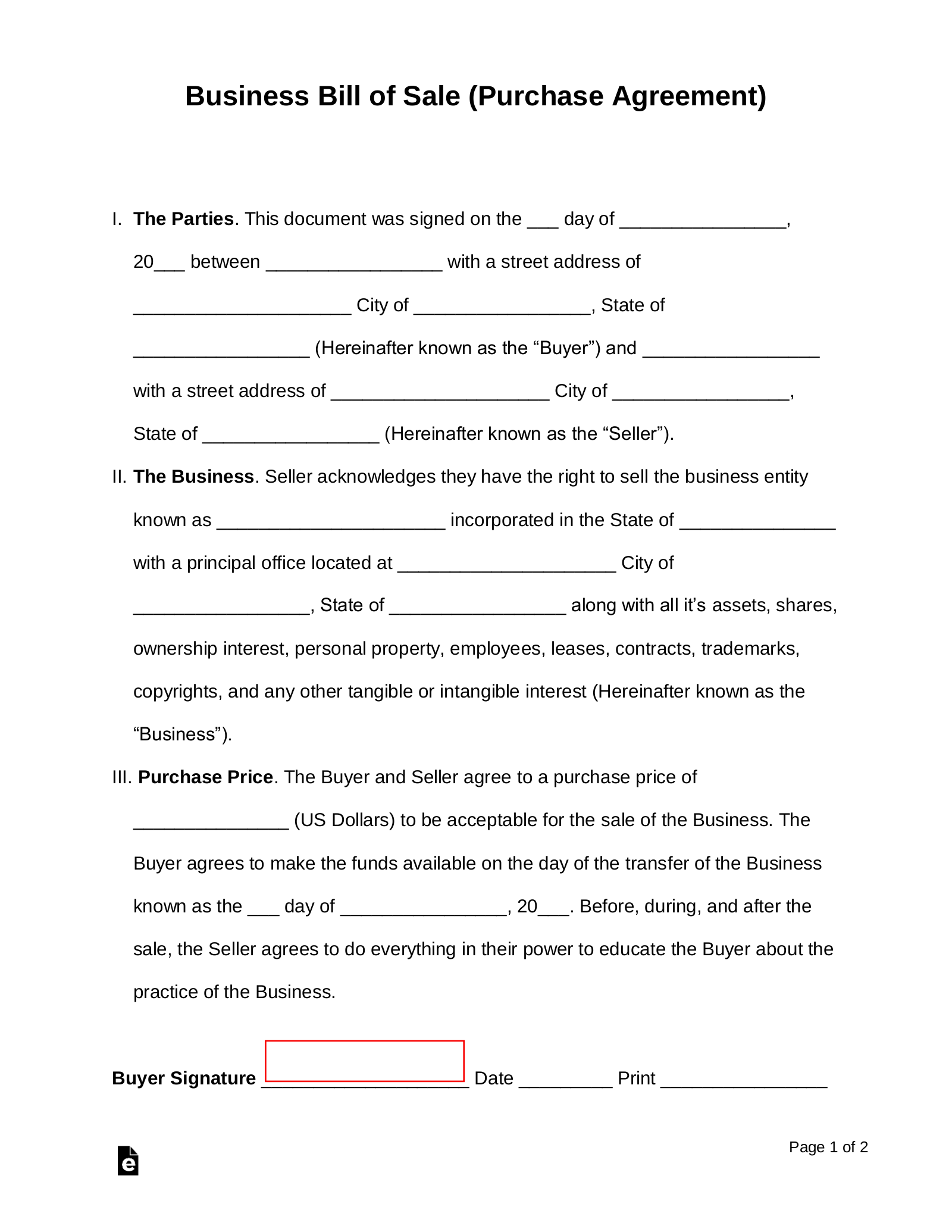 Free Business Bill Of Sale Form PDF Word EForms