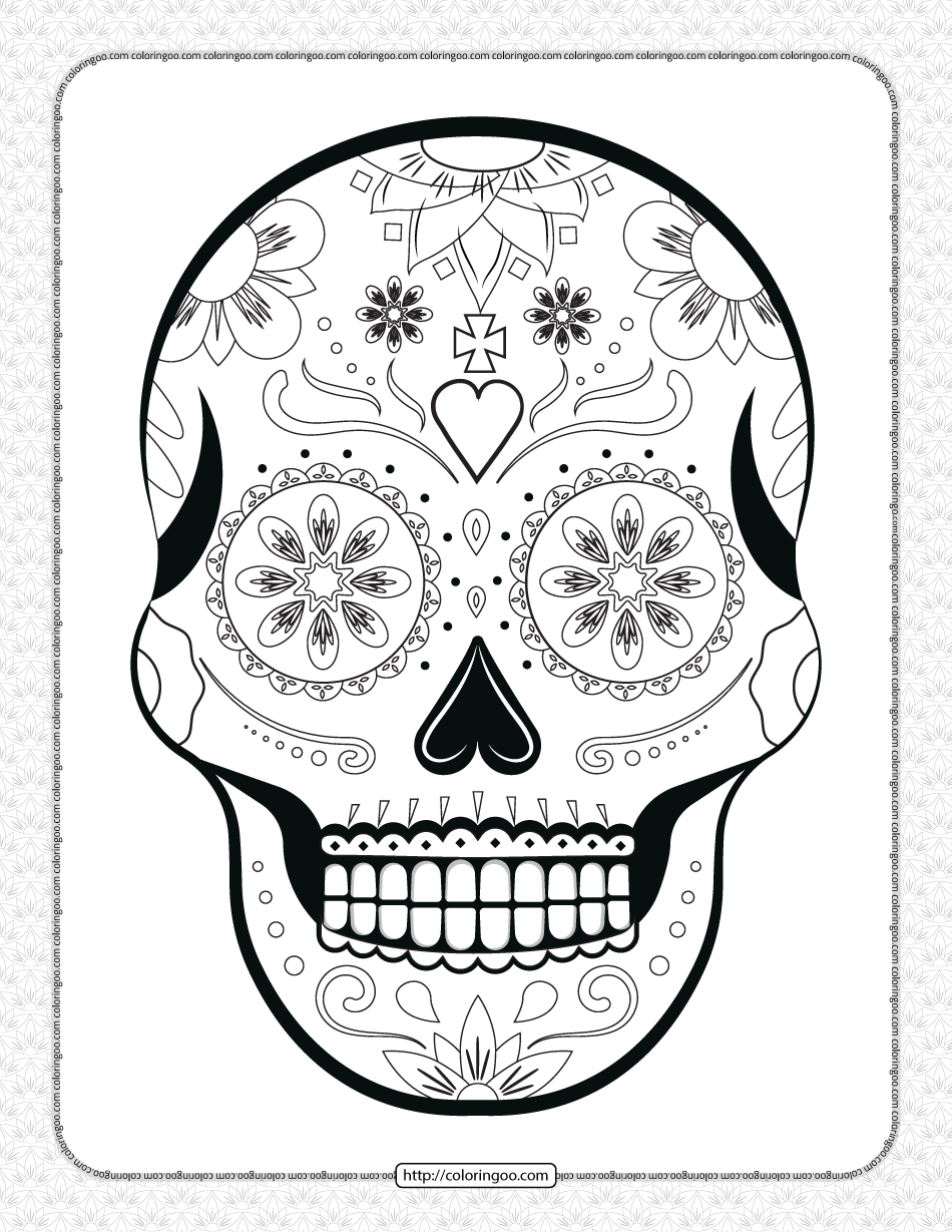 8 Sugar Skull Coloring Pages Free PDF PNG Printables