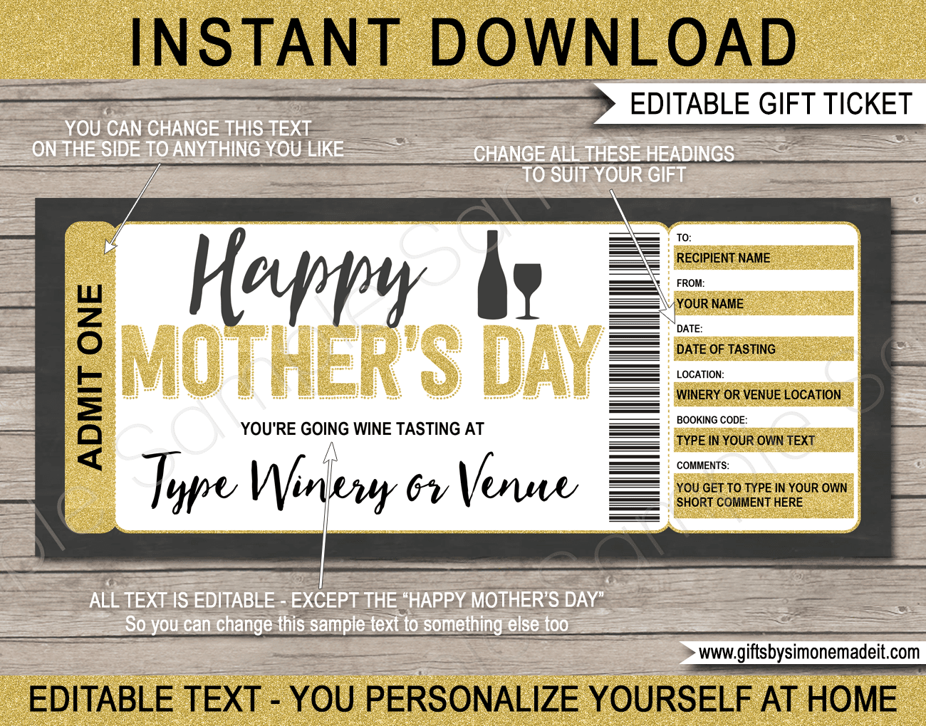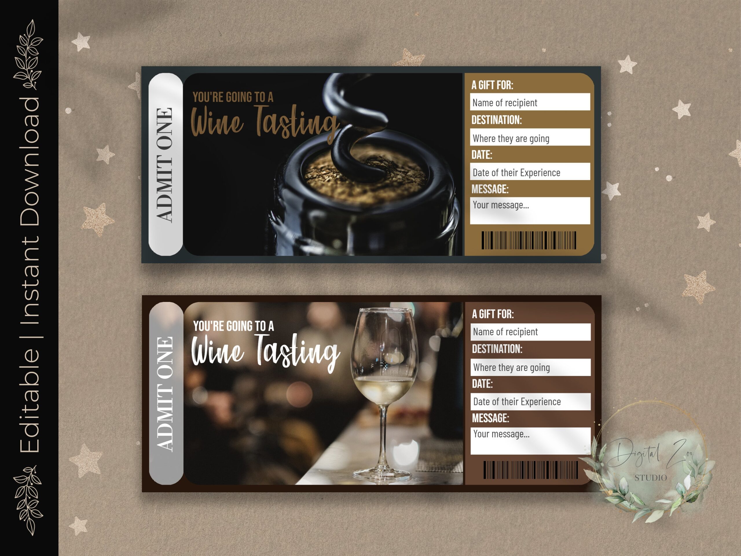 Wine Tasting Gift Voucher Editable Gift Card PDF Download To Fill In Etsy