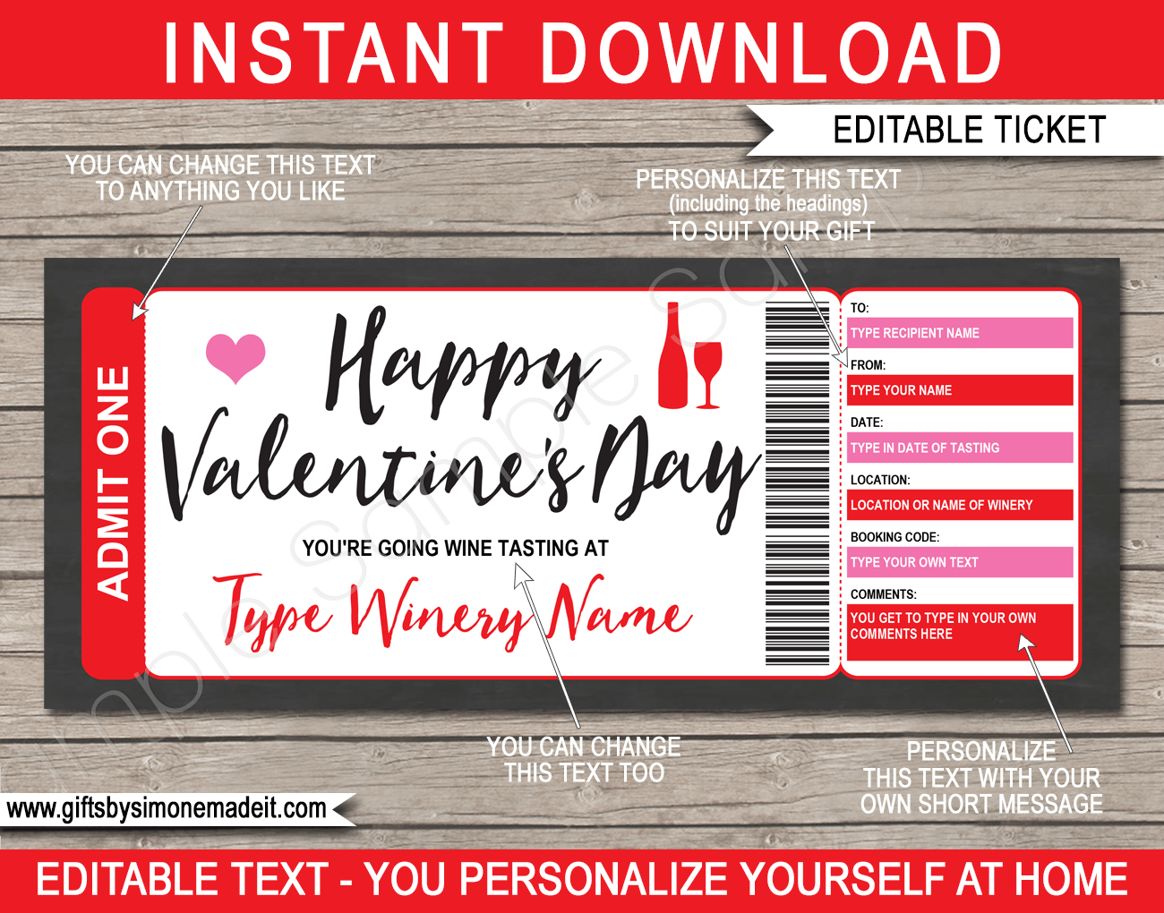 Valentines Day Wine Tasting Gift Certificate Template Printable Winery Gift Voucher