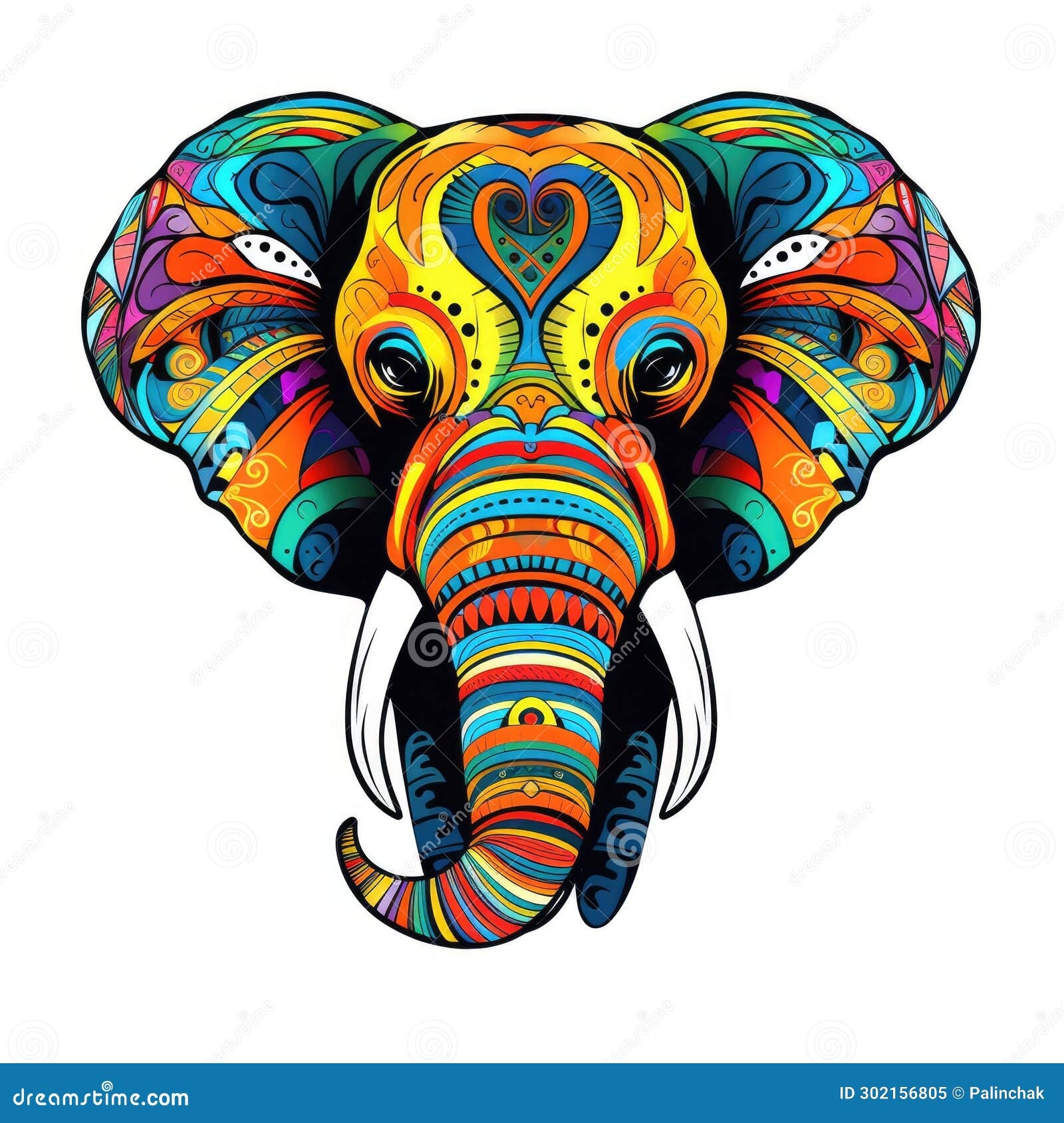 Elephant In Bright Colourful Psychedelic Pop Art Style On White Background Stock Illustration Illustration Of Colorful Isolated 302156805