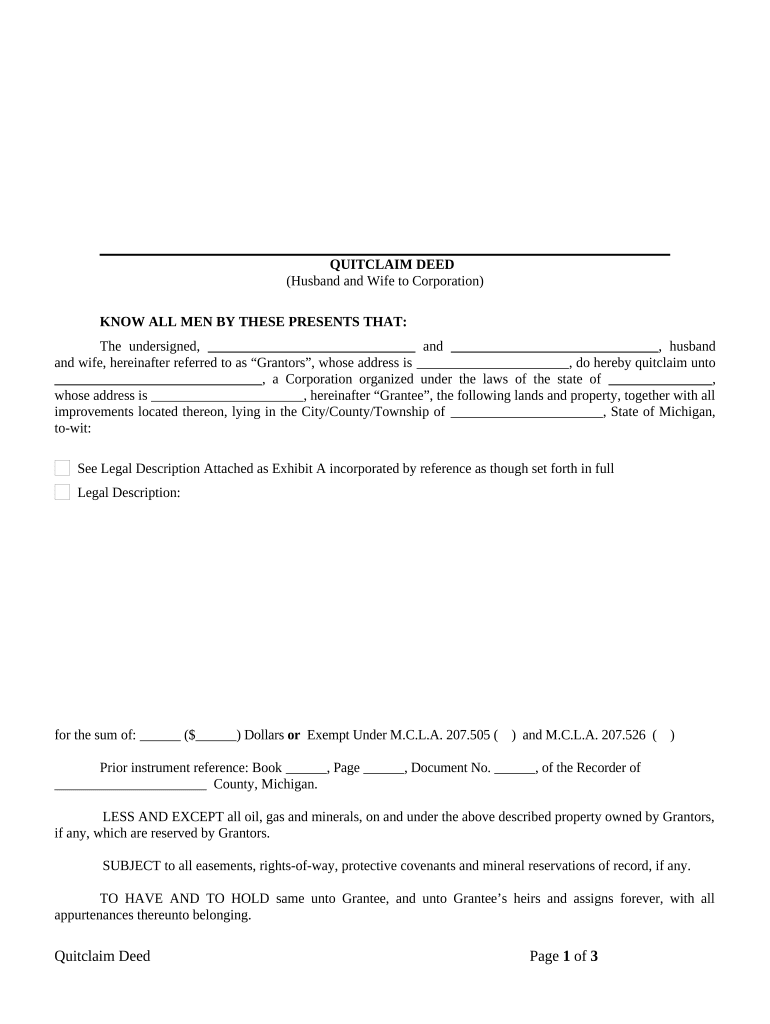 Michigan Quit Claim Deed Form Free Template CocoSign