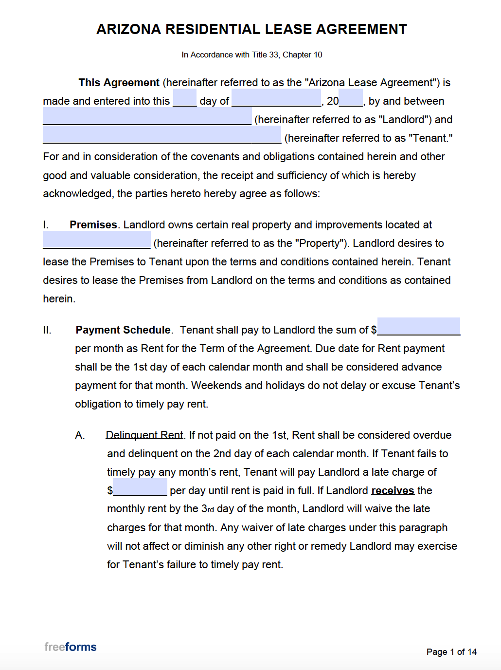 Free Arizona Rental Lease Agreement Templates PDF Word