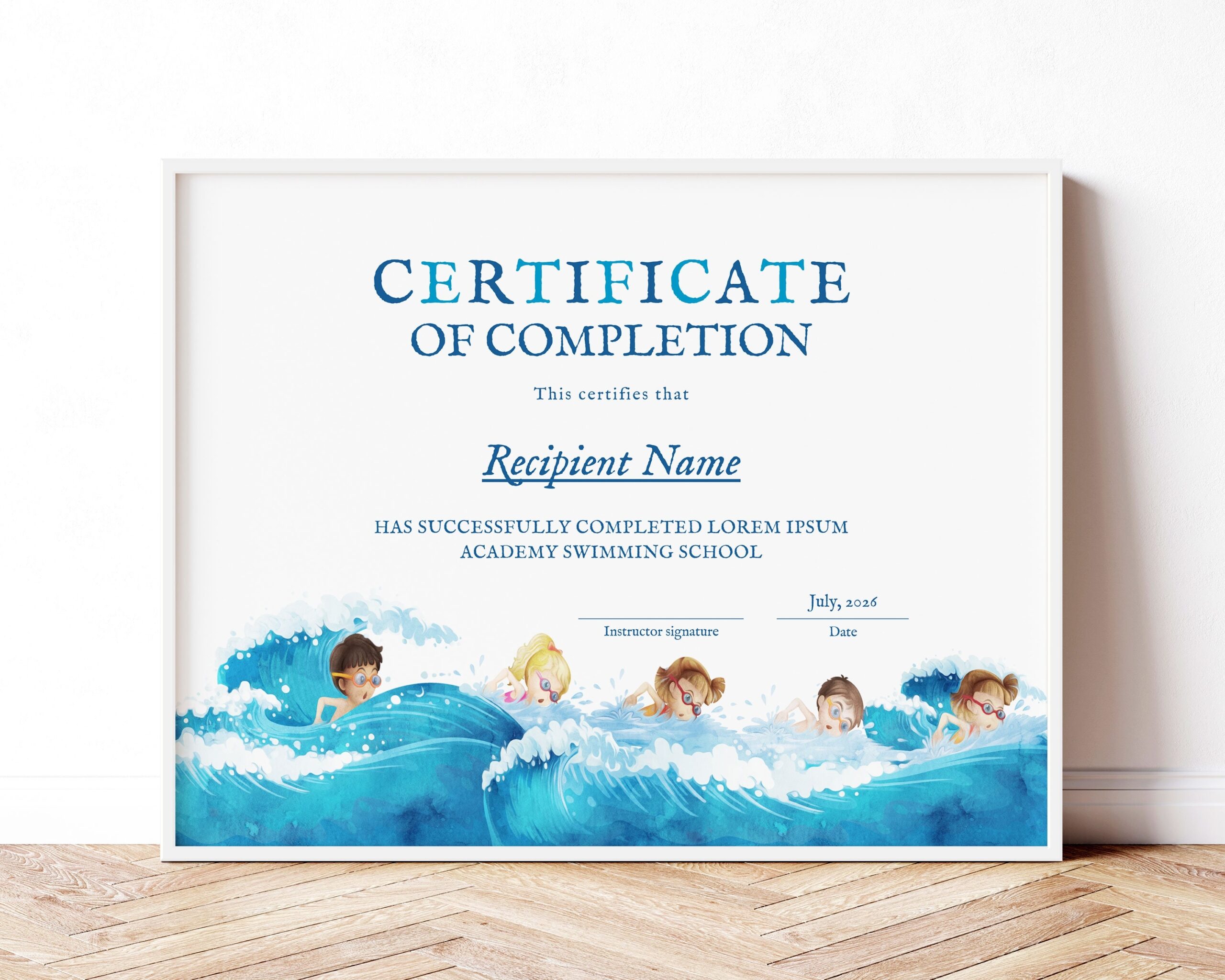 Print it out on high-quality paper for a professional look, or let your child customize it with stickers and markers for a personal touch. No matter how you choose to use it, this certificate is sure to put a smile on your little swimmer’s face.