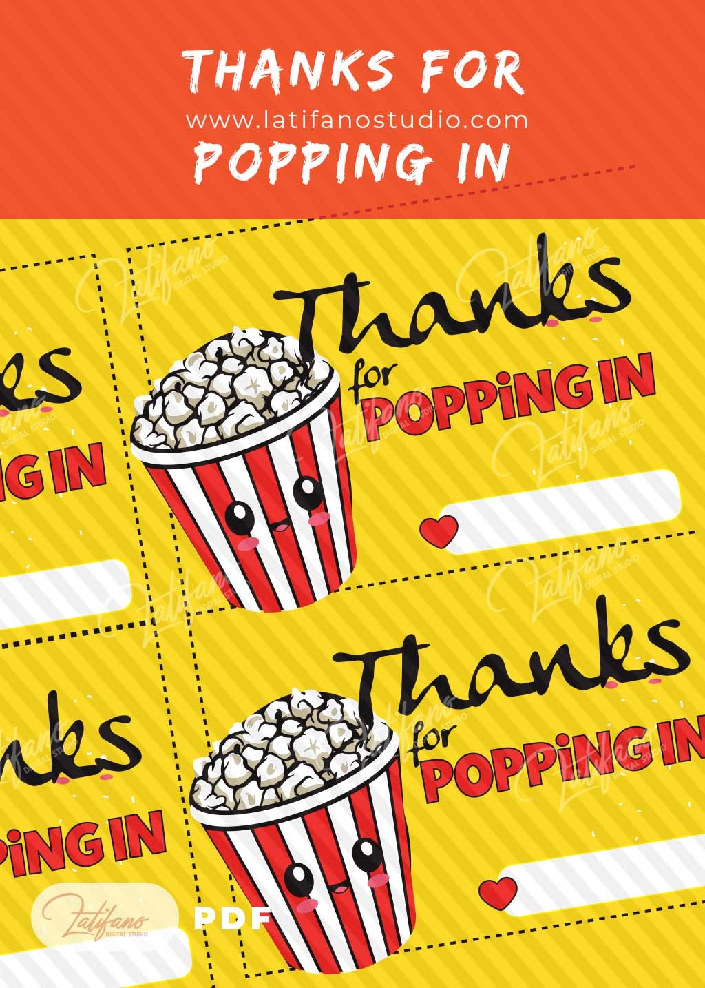 Thank You For Popping By Popcorn Tag Printable PDF My Party Design