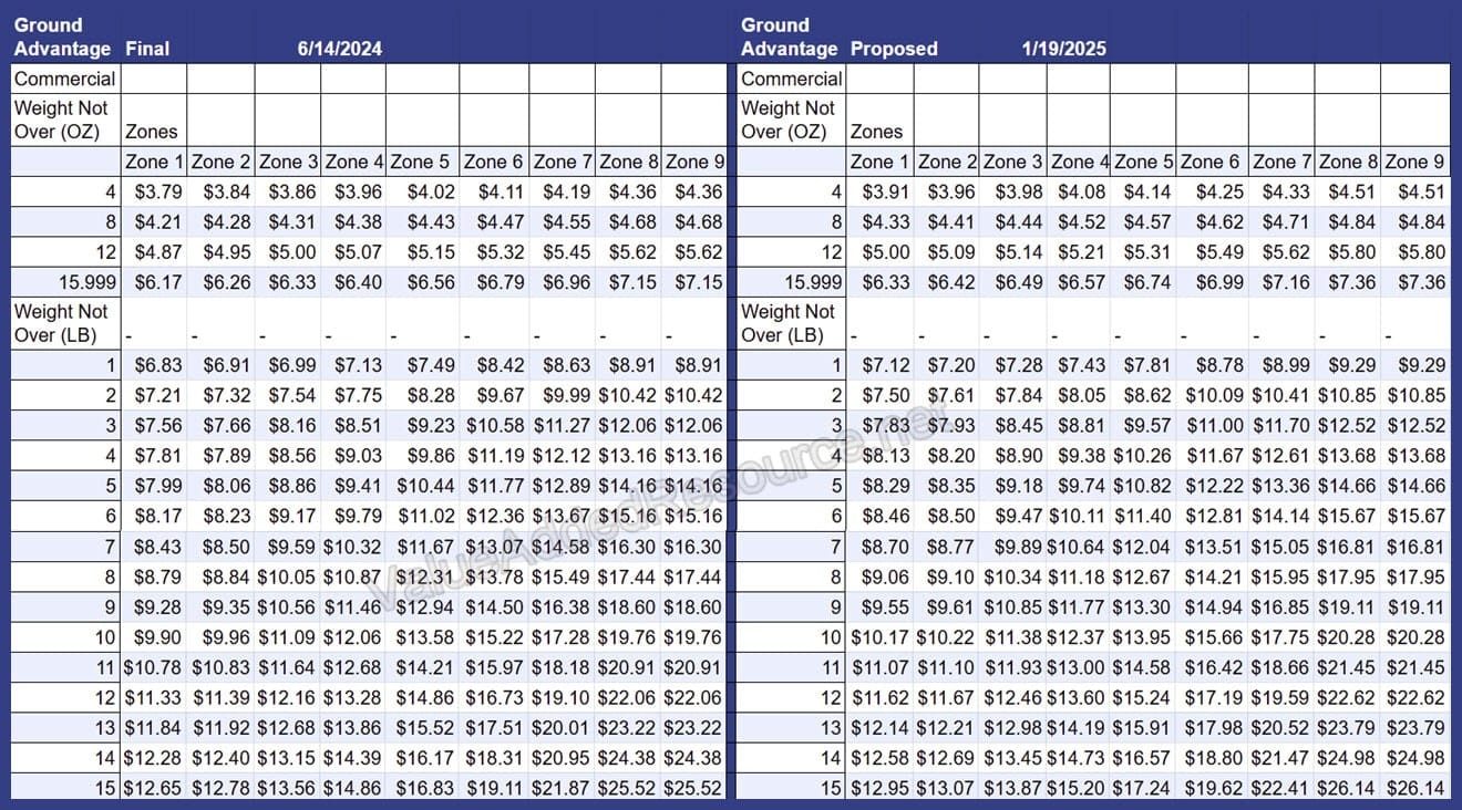 USPS January 2025 Rate Increase Parcel Select Ground Advantage Priority Mail More